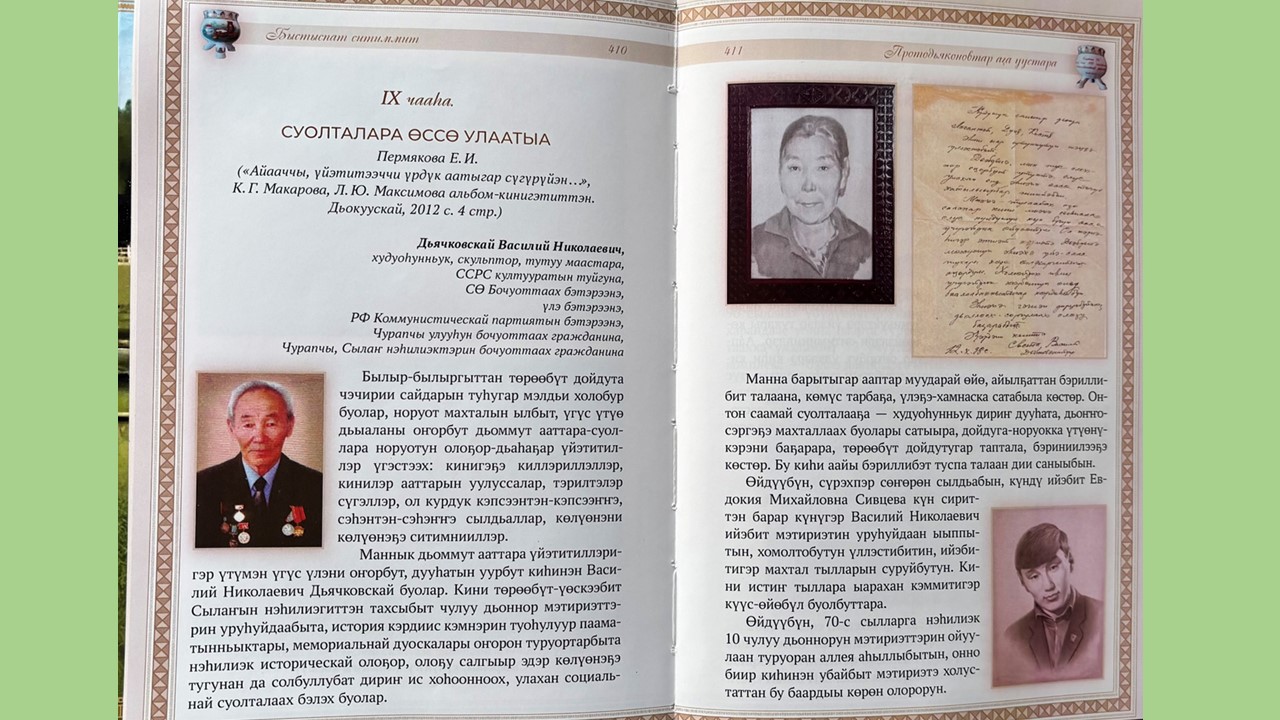 9 түһүмэх – “Суолталара өссө улаатыа” диэн – В.Н.Дьячковскай Бэрэ сиригэр – дойдутугар оҥорбут өйдөбүнньүктэрэ оҕолорго, ыччакка умнуллубат бэлиэ буолан киирбиттэр.