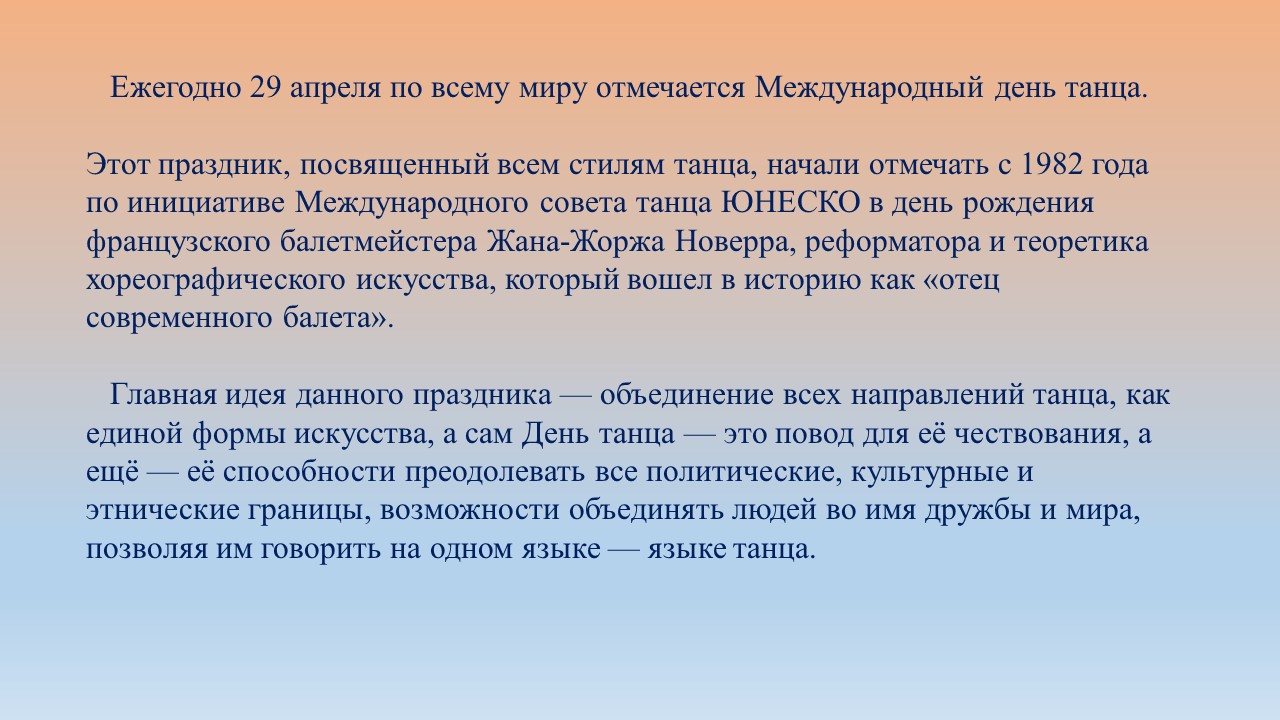 Комментарий читателей статьи "29 апреля — международный день танца."
